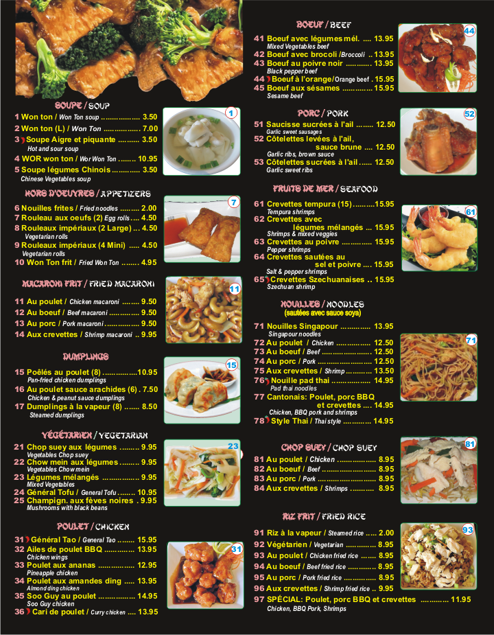 Les prix des menus peuvent changer sans préavis - Photos Suggérées