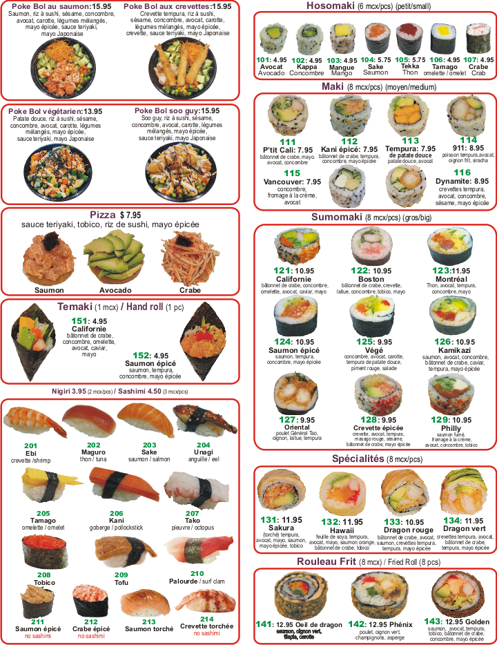 Les prix des menus peuvent changer sans préavis - Photos Suggérées